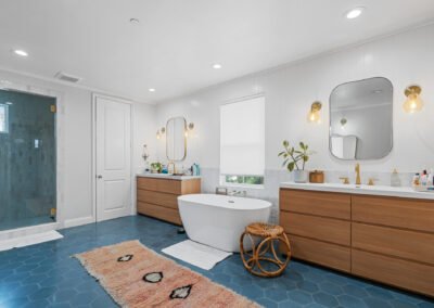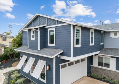 In this 2 bed / 2 bath addition we we were able to add over a thousand square feet of living space without interfering with the foot print of the existing structure. We blew up the roof above the garage and added multiple engineered structural beams allowing us to grow the space organically but also tie into the existing roof line while maintaining consistency with the existing ceiling height. We wanted to bring in as much natural light as possible while still maintaining coherence with the original Hawaiin Plantation motif. We dropped in matching cantilevers on other side to widen the living space substantially. we added extensive roof surface to bring in additional solar panels which helped add adequate power to the property and enhance the environmentally sustainable intentions the homeowners sought out. We utilized multiple pocket doors to maximize space and comfort. We worked closely with a very popular, local designer Salt House Collective to obtain a vibrant, coastal feel while tying in details from a previous remodel. The result is smiling faces across the board.