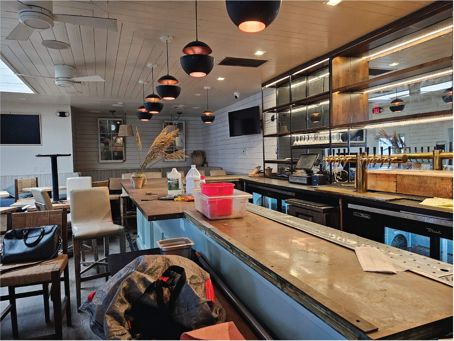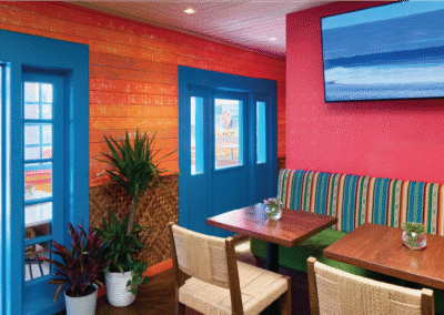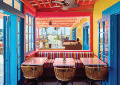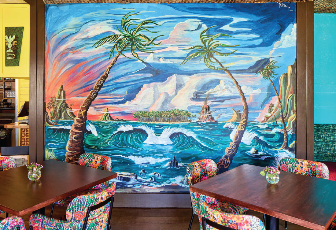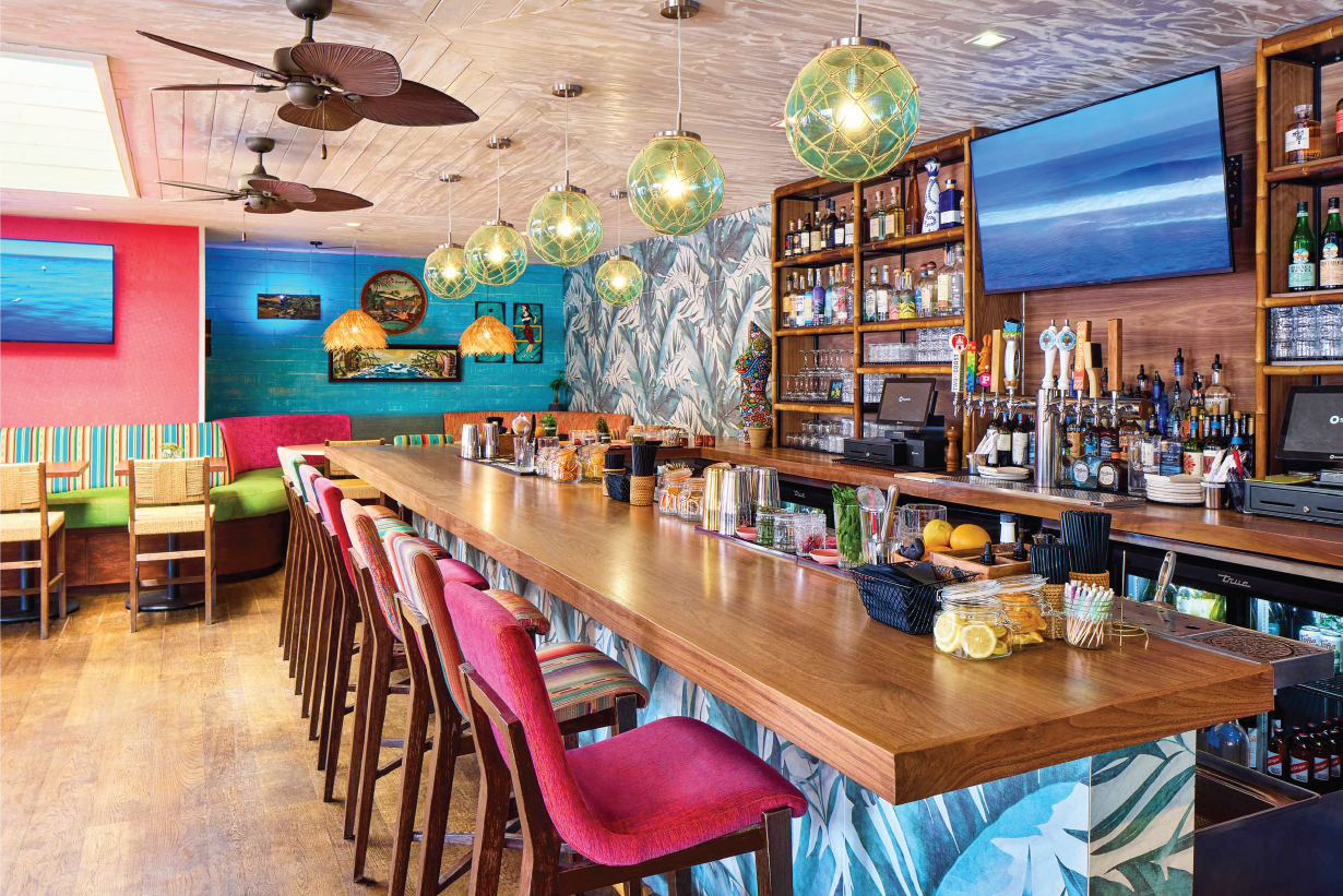 At a time when Los Angeles and its waterfront neighborhoods needed a burst of energy and some redirection, We introduced Nalu Vida to the scene. We decided to inject some tropical flare into the region at the end of Washington blvd right next to The Venice Pier. Our goal was to revitalize the local neighborhood and bring a fresh decor to an area that was in desperate need of attention. Our remodel began by introducing island vibes with a Tulum meets Polynesia theme. We utilized vibrant coloring throughout. We had the all the furniture reupholstered with color schemes representative of the targeted tropical regions and we had the entire interior and exterior painted with bright pastels and an aging technique that gave the visitors a sense they were far away in a little beach bungalow by the sea. We also added all new lighting and speaker system to elevate the ambience and enrich the sound. We ripped out an existing fireplace and replaced it with a tropical mural that we hired a local artisan to paint for us. We swapped out the old bar top for a new handmade Walnut top with a gorgeous wainscot that we had custom tile made especially for. After refinishing the flooring and building shelving units in the back areas for storage, we turned out attention the the Kitchen. We upgraded much of the plumbing and introduced new appliances throughout. The result is a gorgeous facility with world class offerings right on the ocean.
